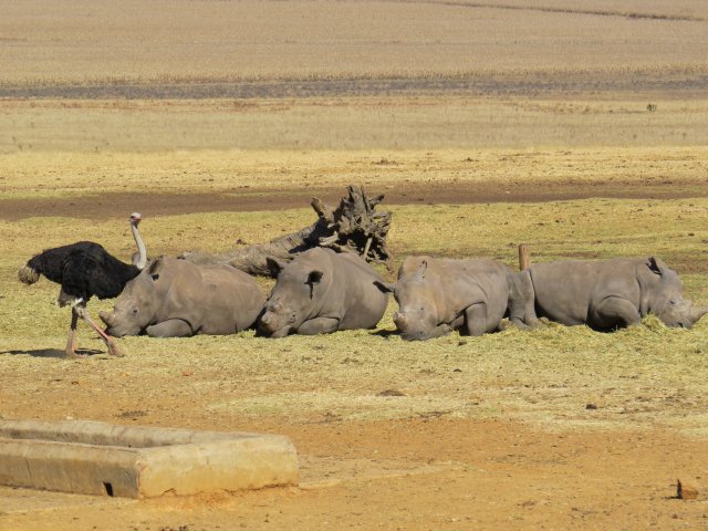 - Reitausflug: Nicht spektakulär, aber schön. Nach der Morgensafari bringt uns ein Fahrer der Lodge zur Reitanlage "The Equine House", die einen sehr gepflegten Eindruck macht. Diese liegt 20 Fahrminuten entfernt auf der anderen Seite von Hoedspruit direkt neben dem Radisson Safari Hotel. Wir werden kurz eingewiesen, erhalten einen Reithelm und man fragt nach unseren Reiterfahrungen (blutige Anfänger), damit ein passendes Pferd gewählt wird. Mit einer Begleitung geht es aus der Umzäunung direkt in den Busch. Da wir uns als Anfänger geoutet haben, gibt es keinen Trab oder Galopp, es ist mehr ein Spaziergang zu Pferd. Das kann wirklich jeder machen (aber Po und Knie tun danach natürlich weh). Wir sehen keine Tiere (hatten wir auch nicht erwartet), aber das ist reine Glückssache. Es gibt hier Giraffen und alle möglichen Antilopenarten, nur keine gefährlichen Tiere. 77 Euro für 2 Stunden Reiten ist nicht wenig, aber es war auch keine Massenveranstaltung. Wir hatten das zu Zweit gebucht und blieben zu Zweit (plus Reitbegleiterin).